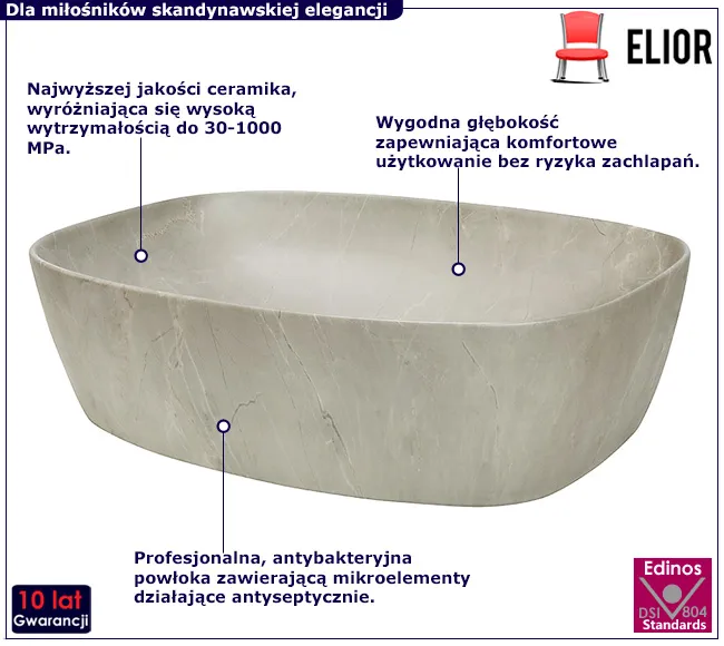 Dotyczy: Prostokątna umywalka nablatowa w kolorze betonu - Solvay 4X