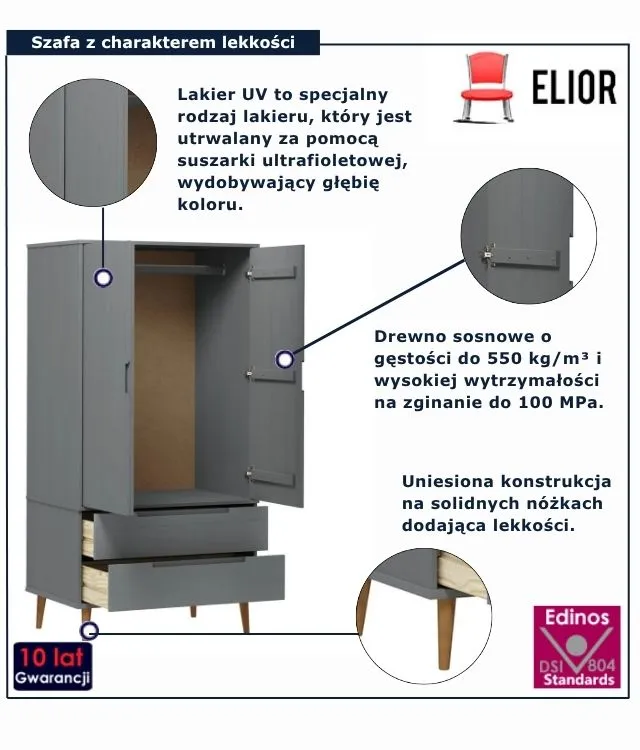 Niepozorna na pierwszy rzut oka, ale za to mistrzyni porządku i stylu – właśnie taka jest szafa Noko marki Edinos Premium. Jej lekka, podniesiona konstrukcja dodaje wnętrzu przestronności, a subtelna forma zachwyca prostotą w najlepszym wydaniu. To idealny wybór dla tych, którzy chcą uniknąć chaosu i wreszcie znaleźć miejsce na wszystkie rzeczy – bez upychania ich „gdzieś na później”. Dzięki niej każda przestrzeń nabiera oddechu, a Ty zyskujesz więcej spokoju i… czasu rano. Pomyśl, jak przyjemnie byłoby otworzyć drzwi szafy i od razu znaleźć ulubiony sweter, torebkę lub koszulę na spotkanie. Brzmi jak luksus? A może właśnie tego potrzebujesz w swoim codziennym życiu?