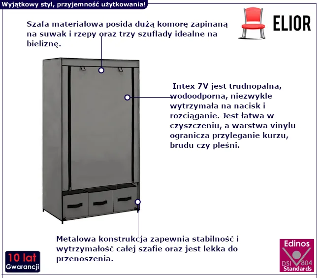 • Kolor: szary. W naszej ofercie posiadamy także inne materiałowe szafy.