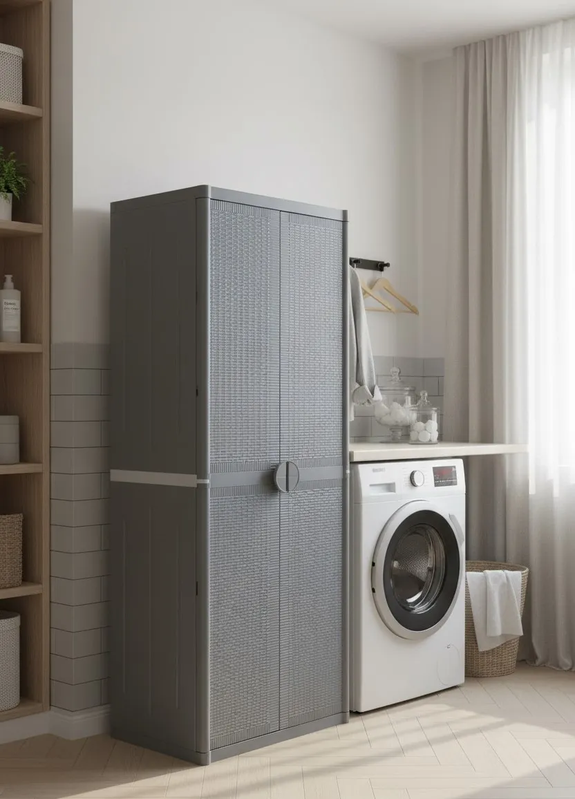Dotyczy: Brązowa szafa gospodarcza dwudrzwiowa z 4 półkami - Kermi 4X