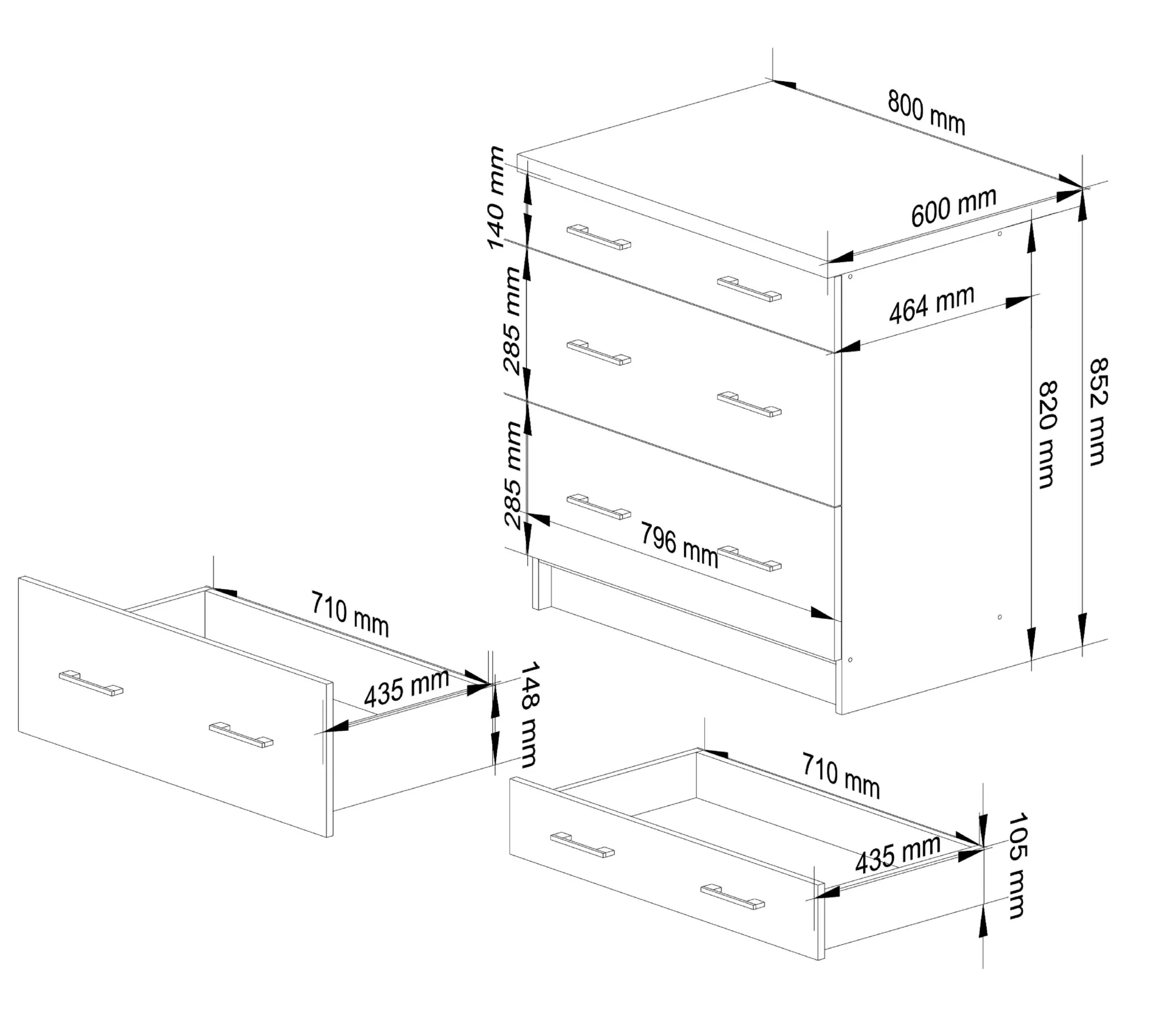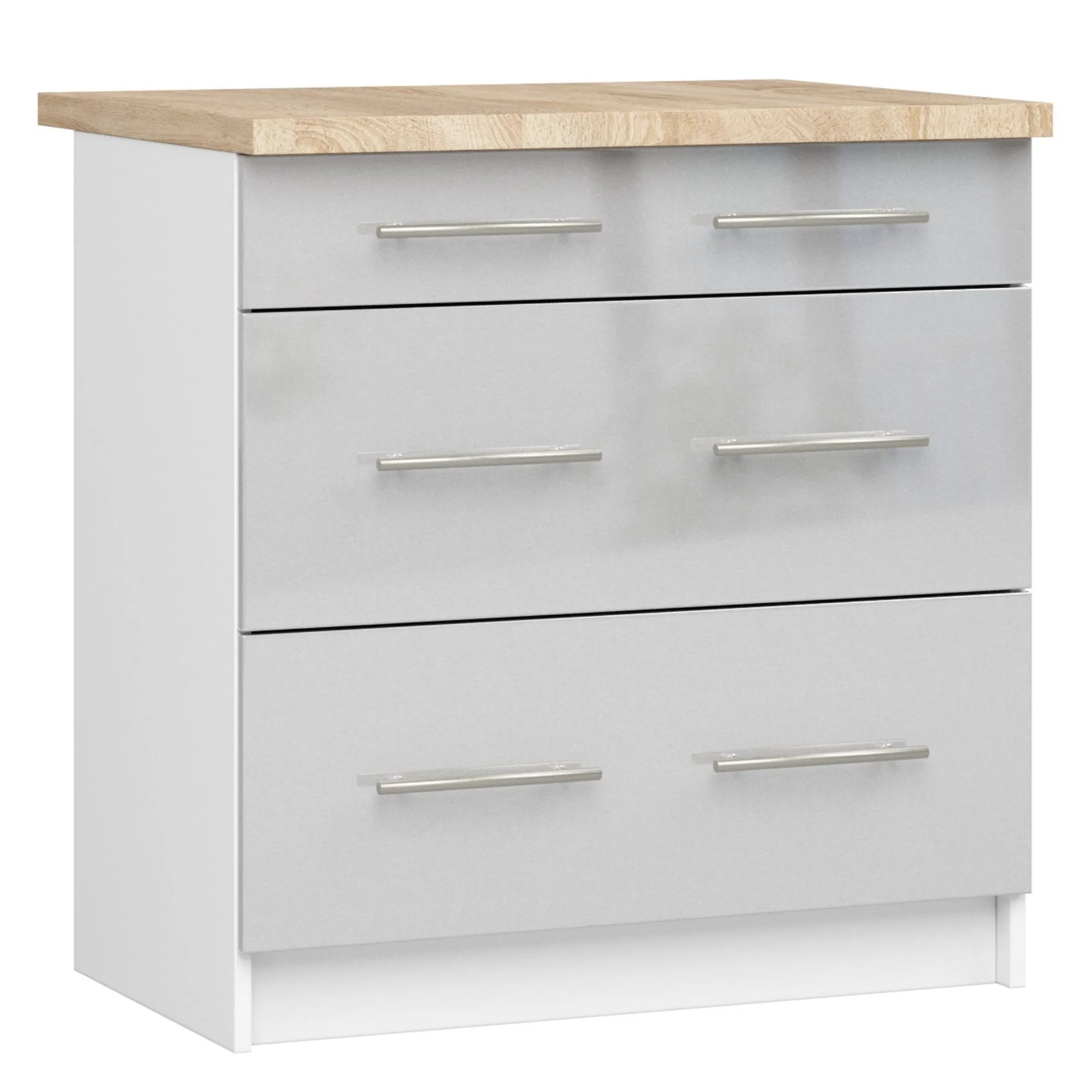 • Przestronność i organizacja: trzy duże szuflady pozwalają na wygodne przechowywanie naczyń, sztućców i innych kuchennych akcesoriów, zapewniając porządek w Twojej kuchni.