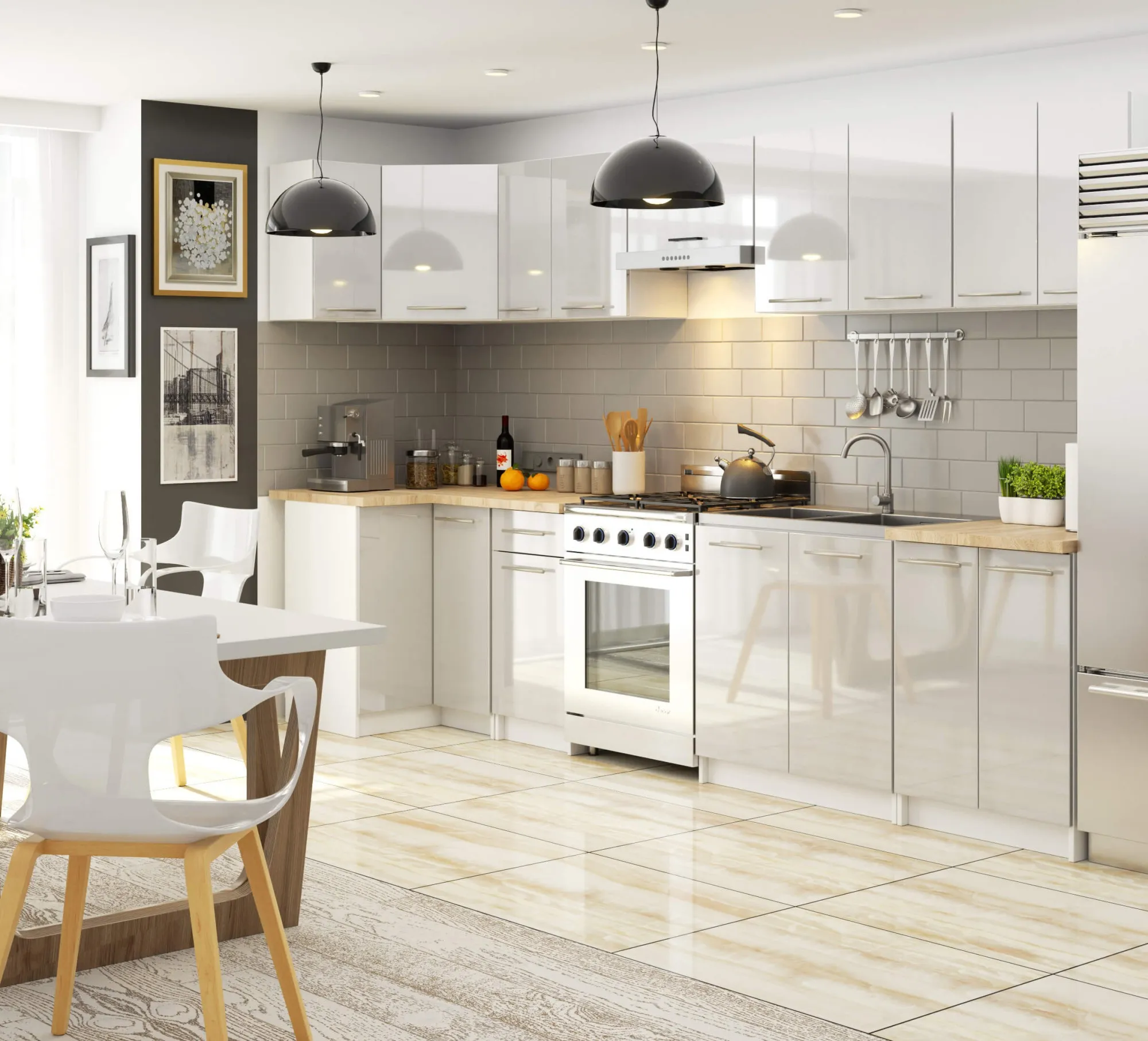 Poniżej przedstawiamy zestaw mebli kuchennych Cortez w przykładowej wizualizacji.