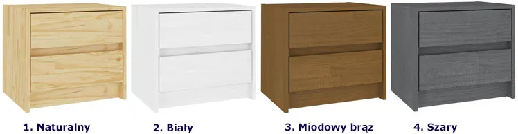 Kolory sosnowej szafki nocnej z 2 szufladami Sintrox