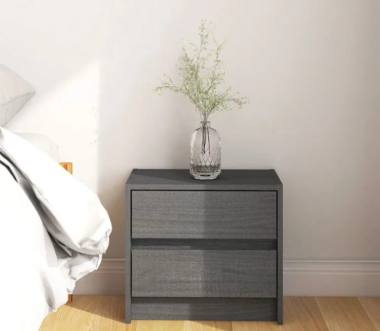 Szara szafka nocna drewniana z szufladami - Sintrox