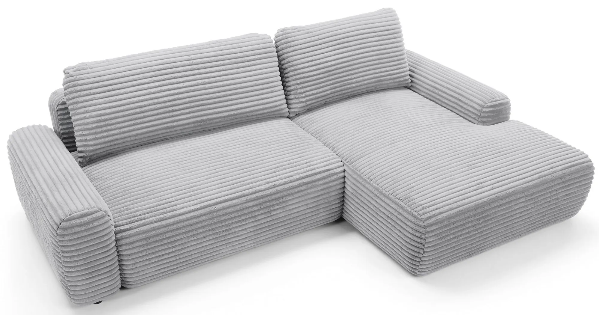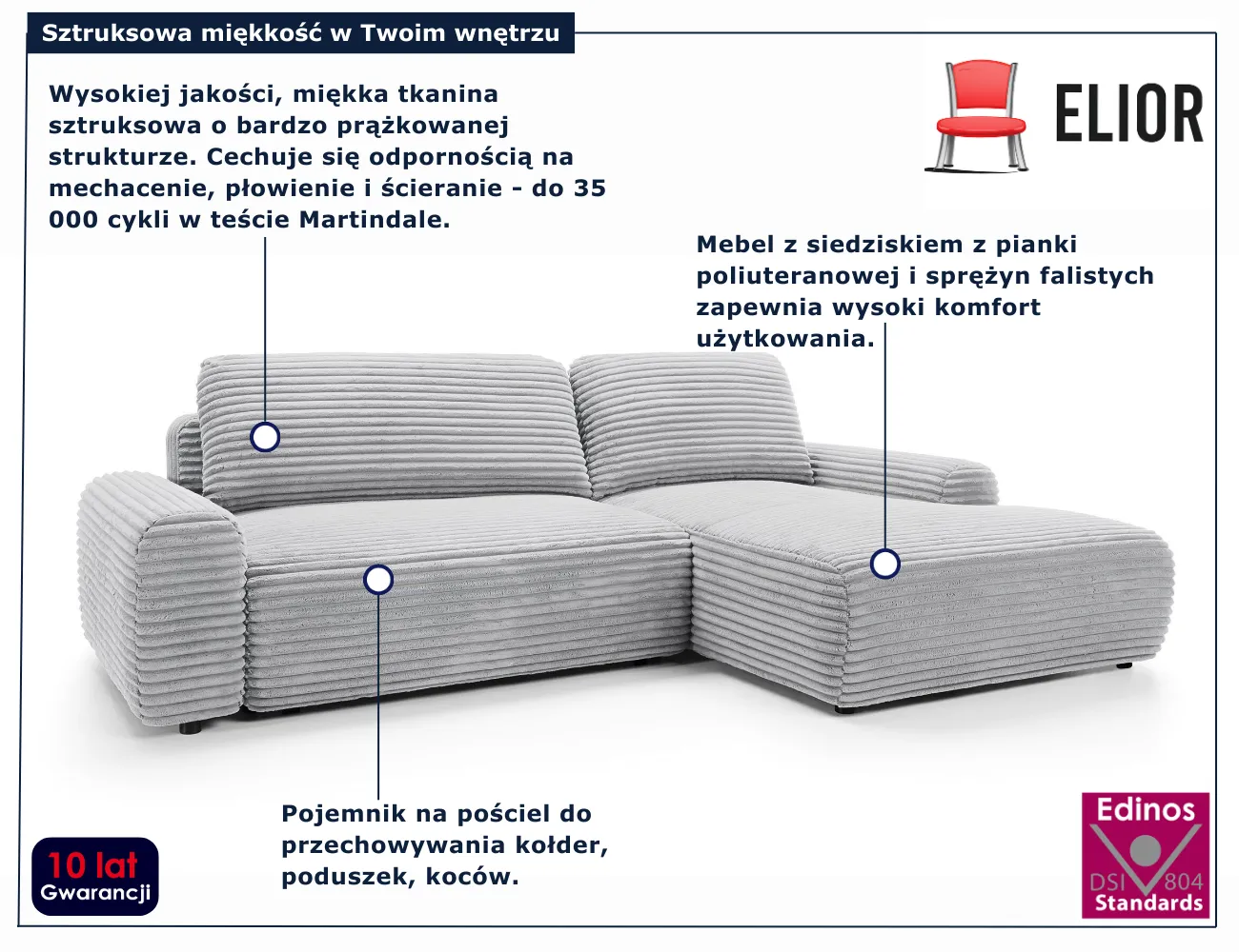 Szara sztruksowa kanapa narożna z funkcją spania - Obelis