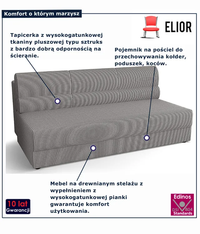 • Funkcja spania – szybka i wygodna transformacja w łóżko.