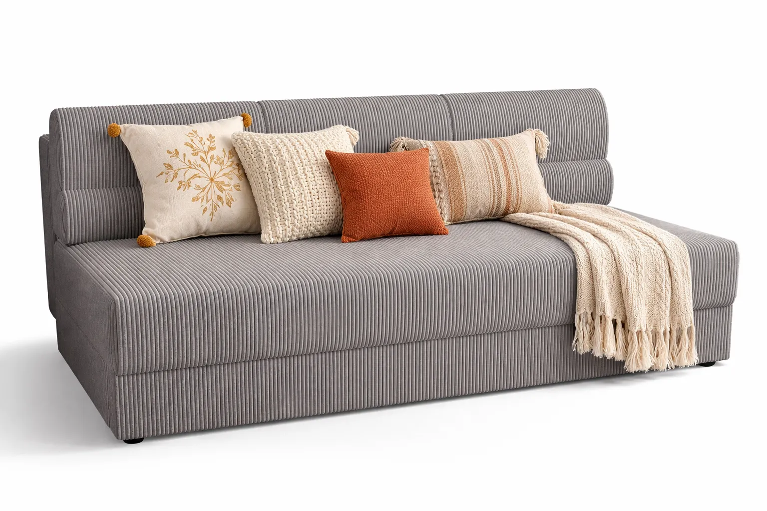 Szara sztruksowa sofa rozkładana - Aurevo