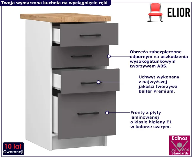 • Kolor: szary. W naszej ofercie posiadamy także inne szafki kuchenne. Kliknij i stwórz swój wyjątkowy zestaw mebli.
