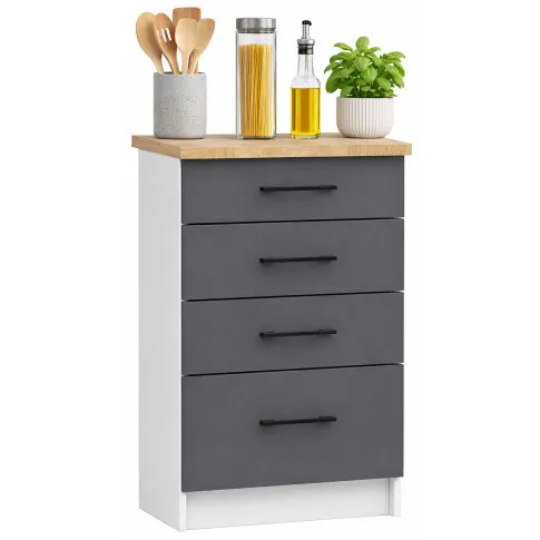 Szafka jest kompaktowa, ale bardzo użyteczna. Szuflady mają różną głębokość, co pozwala wygodnie posegregować rzeczy. Idealnie sprawdza się na drobiazgi kuchenne, których zawsze jest pełno. Zawiasy i prowadnice działają bez zarzutu. Kolor szary wygląda bardzo elegancko i nowocześnie, świetnie łączy się z drewnem i bielą. Montaż był intuicyjny, wszystkie części dobrze oznaczone. Przesyłka przyszła szybko i bez uszkodzeń. Jak na taką cenę i rozmiar to naprawdę udany zakup. Bardzo polecam do mniejszych kuchni.