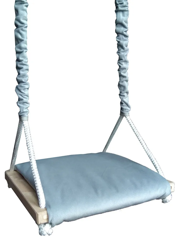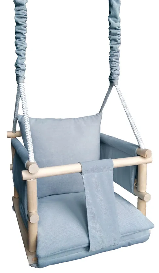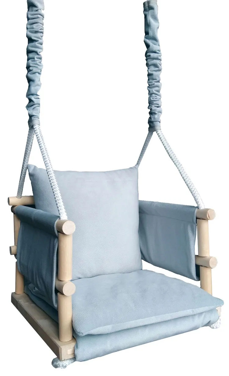 Welwetowa huśtawka dziecięca Eleonor z drewna