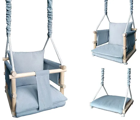 Szara welwetowa huśtawka dziecięca 3w1 Eleonor