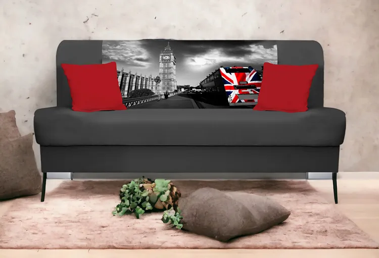 Szara wersalka rozkładana z motywem Londynu - Piovia 6X