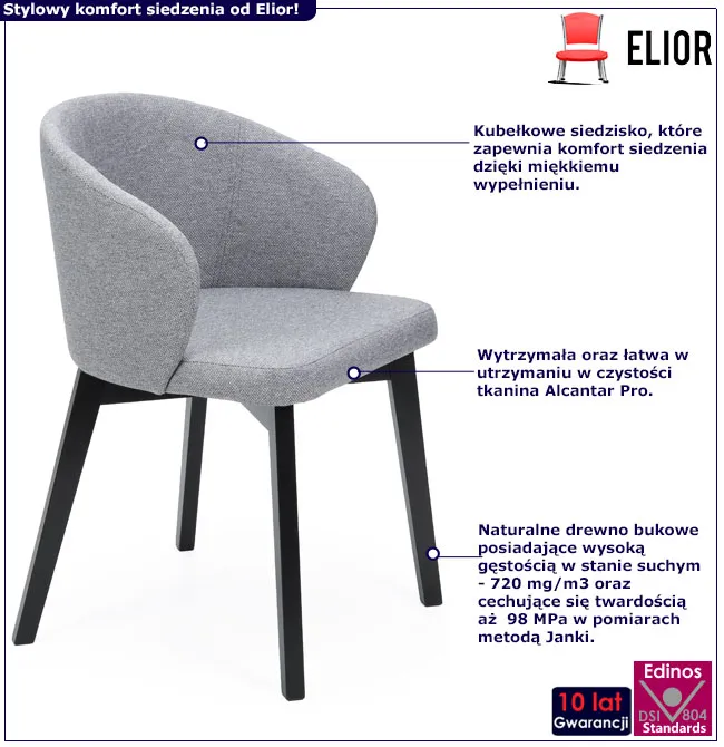 Krzesło tapicerowane Faro 3X marki Elior łączy wyjątkowy design z niezrównanym komfortem, stając się idealnym wyborem do każdego nowoczesnego wnętrza. Solidna konstrukcja, wygodne kubełkowe siedzisko i stylowa tapicerka to gwarancja satysfakcji i trwałości na lata. Zamów krzesło kubełkowe Faro 3X i wprowadź nową jakość do swojego domu! Powyższa oferta dotyczy krzesła w kolorze szarym w promocyjnej cenie 458 zł. Regularna cena tego mebla to 568 zł. Zamawiając go właśnie teraz zyskujesz aż 110 zł rabatu!