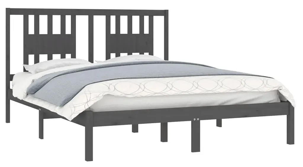 Szare drewniane łóżko dwuosobowe 140x200 - Pierot 5X