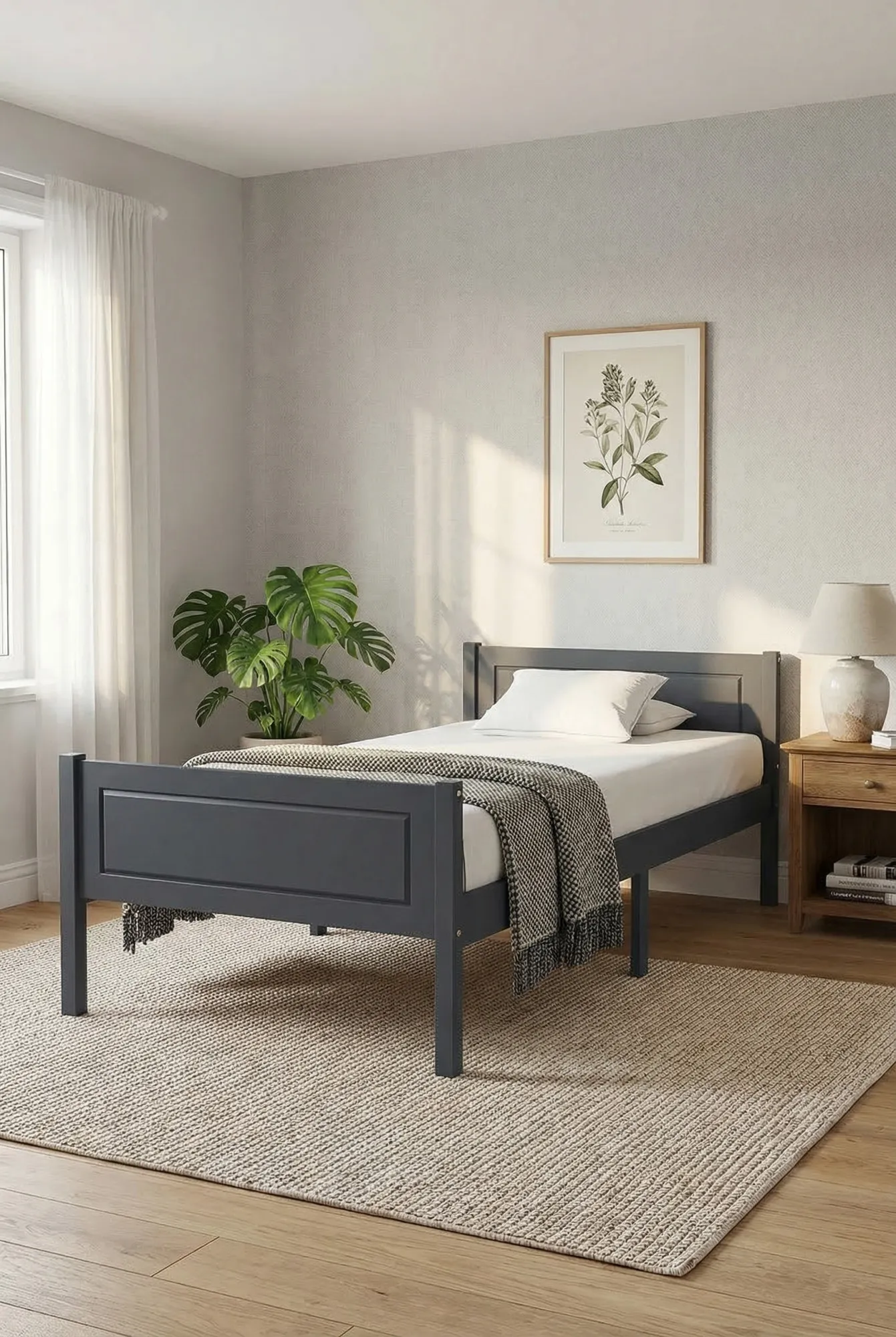 • Rama: Solidna i trwała konstrukcja z litego drewna sosnowego.