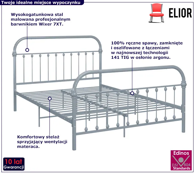 • Kolor: szary. W naszej ofercie posiadamy także inne łóżka metalowe. Kliknij i stwórz swój wyjątkowy zestaw mebli.