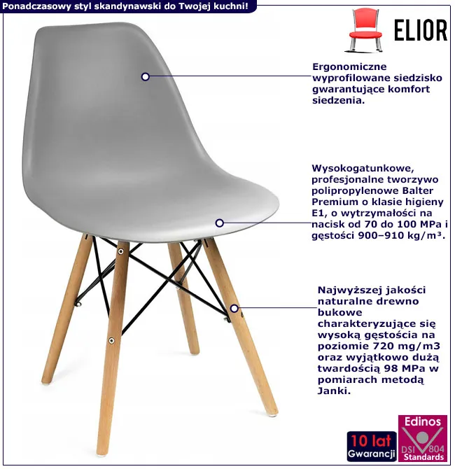 • Kliknij w link i sprawdź także inne krzesła skandynawskie szare w sklepie Edinos.pl.