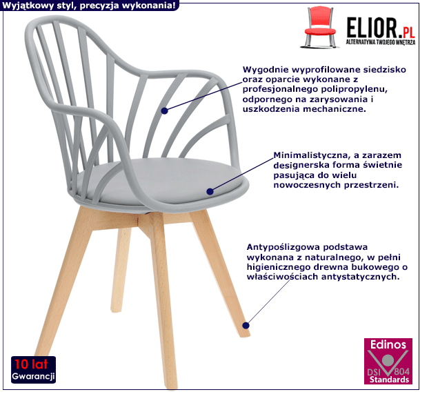 - Modna kolorystyka: szare, drewno bukowe. Kliknij w link i sprawdź także inne inne krzesła patyczaki w sklepie Edinos.pl. Stwórz swój praktyczny zestaw mebli.