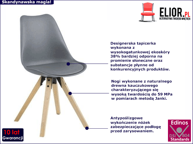 - Kolor: szary i nóżki w kolorze naturalnego dębu. Kliknij w link i zobacz też inne skandynawskie krzesła w sklepie Edinos.pl - na pewno znajdziesz coś dla siebie!