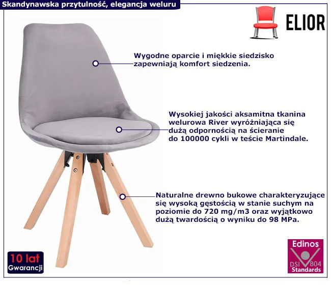 • drewniane nóżki podkreślają skandynawski charakter krzesła i zapewniają stabilność
