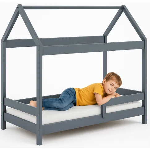 Szare łóżko domek parterowe z barierką i materacem - Kiders 180x80 cm