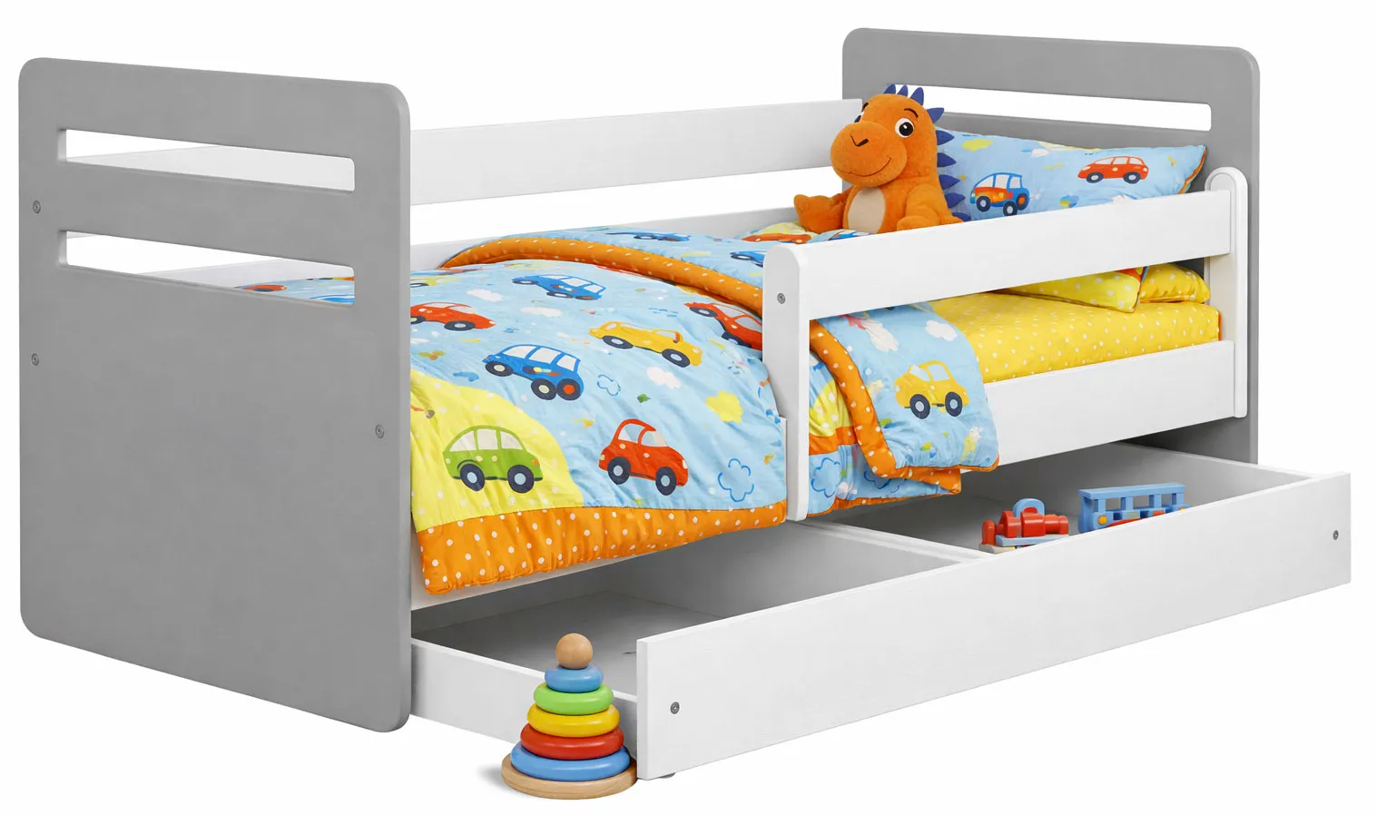 Łóżko Acar 2X mix to bezpieczny model nawet dla najmłodszego dziecka. Zaokrąglone krawędzie i ruchoma barierka o długości 105 cm zatroszczą o się o bezpieczny sen czy zabawę każdego małego śpiocha. Ponadto łóżko zostało wyposażone w dwudzielną szufladę na kółkach, która przechowa pościel czy zabawki Twojego dziecka, a to jeszcze nie koniec atutów prezentowanego mebla. Łóżko Candy produkowane jest jako dwustronne, co w praktyce oznacza, że podczas montażu sam decydujesz po której stronie będzie szuflada wraz z ruchomą barierką. To znakomita opcja, która pozwala dostosować łóżko do indywidualnych potrzeb każdego użytkownika. Na Twoją uwagę zasługuje fakt, że w zestawie z łóżkiem otrzymujesz solidny stelaż z wysokogatunkowego drewna brzozowego (sprężynujące listwy stelaża dopasowują się do ciężaru ciała, są odporne na pękanie i zapewniają odpowiednią wentylację materaca), a także materac piankowy o wysokości 8 cm, który zadba o zdrowy i komfortowy sen Twojego dziecka. Materac posiada pokrowiec na zamek błyskawiczny, który z łatwością ściągniesz i wypierzesz, co z kolei pozwoli Ci zachować pełną higienę materaca. Łóżko Acar 2X mix montowane jest na śrubach ściągających, dzięki czemu wytrzymuje obciążenie aż do 150 kg (dzięki takiej opcji rodzic może położyć się do snu razem z maluszkiem). Wspólnie z marką Edinos Premium stwórz komfortowy i bezpieczny pokój dla swojego szkraba. Zapraszamy.
