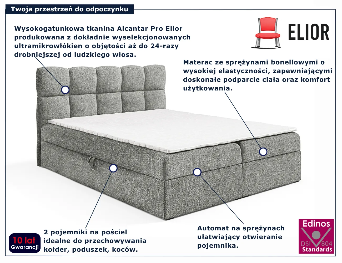 Łóżko Massilo marki Elior to łóżko, które doda Twojej sypialni harmonii, a Tobie – każdej nocy głębokiego, regenerującego snu. Dodaj je do koszyka i przekonaj się, jak przyjemny może być wypoczynek w prawdziwie komfortowym stylu.