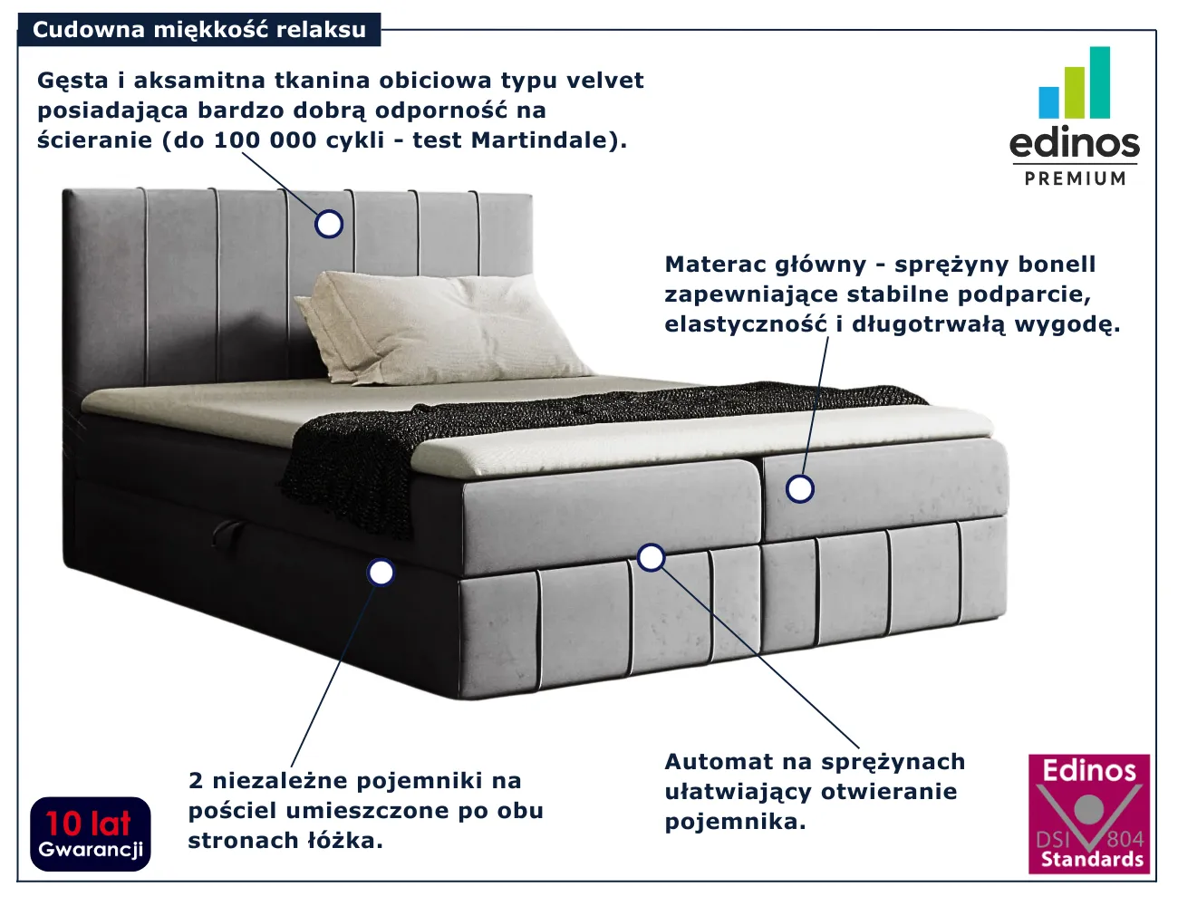 Dotyczy: Czarne łóżko kontynentalne z pojemnikiem 5 rozmiarów - Elarivo