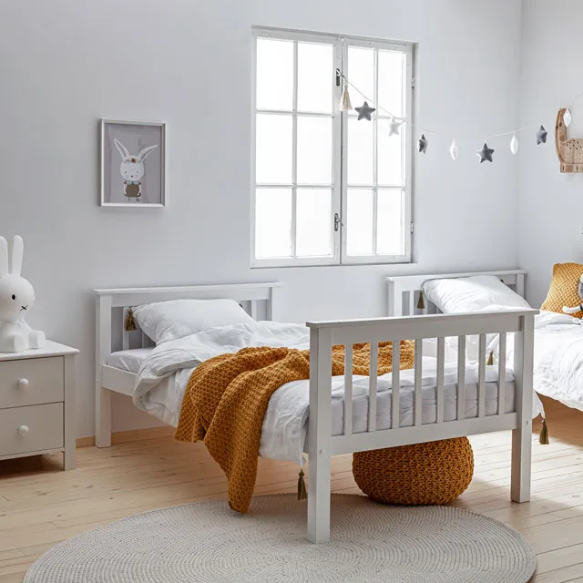 Poniżej przedstawiamy przykładową wizualizację wnętrza z wykorzystaniem łóżka dziecięcego Toca 2X w kolorze białym: