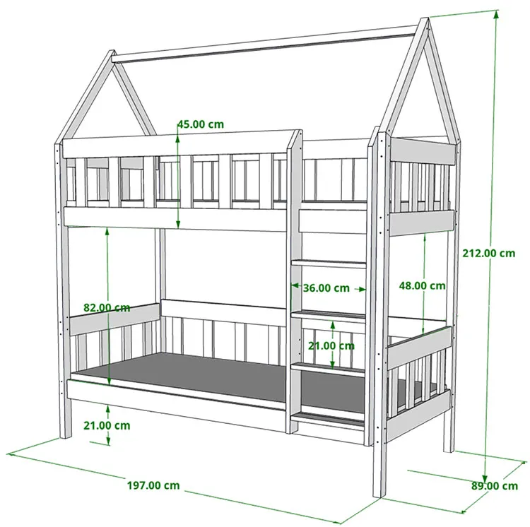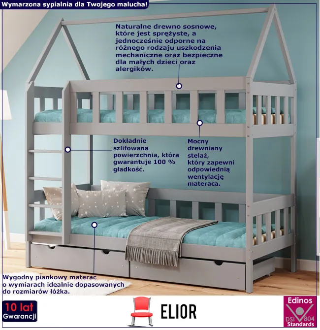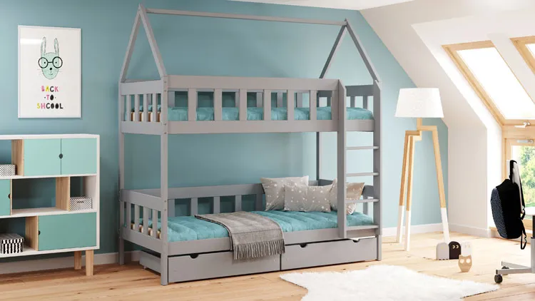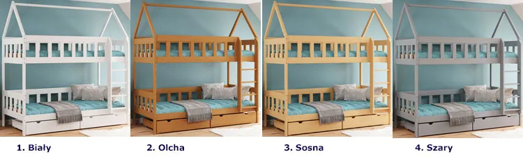 Dotyczy: Drewniane łóżko piętrowe domek do pokoju dziecięcego, sosna - Varcon 4X 190x80 cm