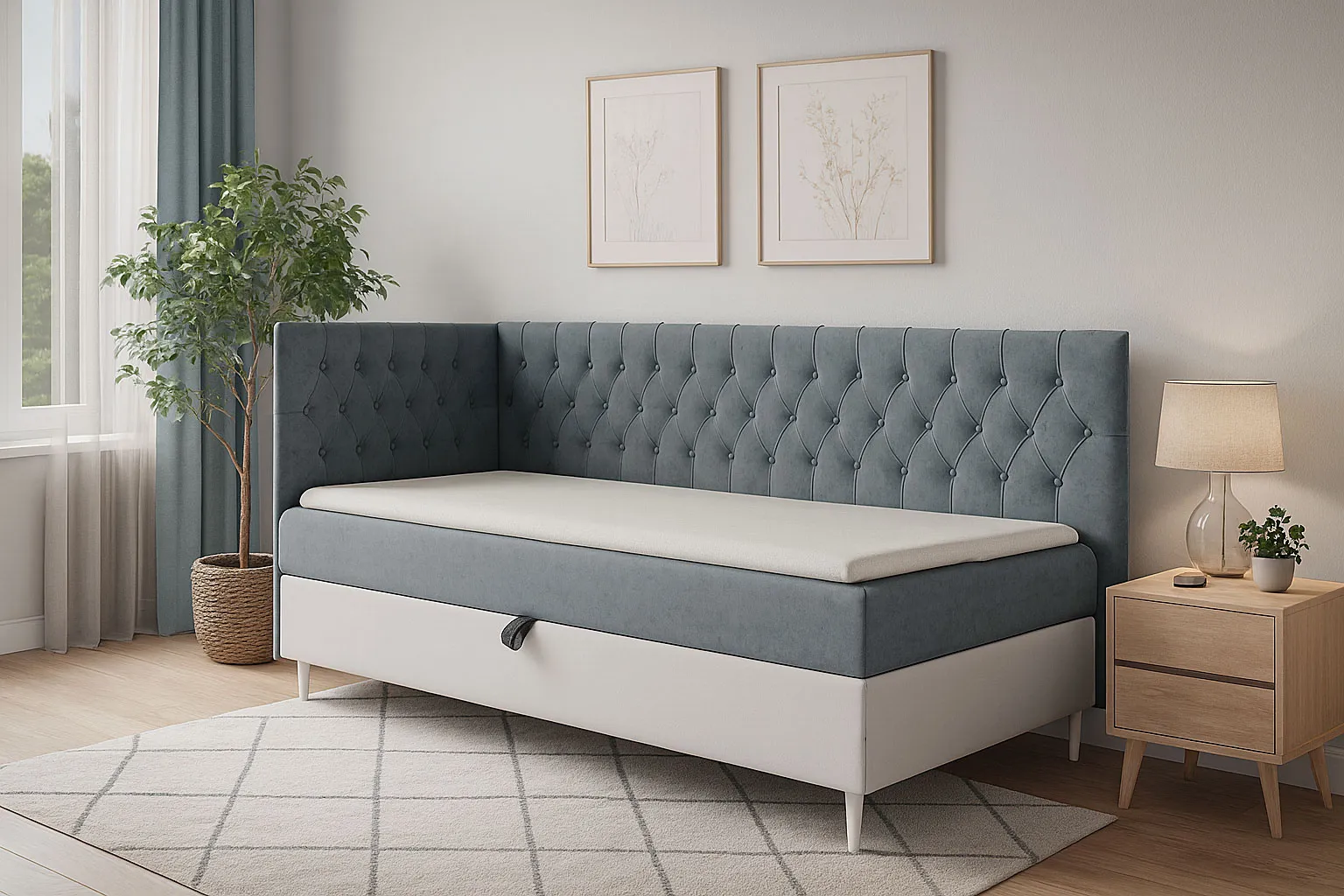 Dotyczy: Brązowe łóżko z pojemnikiem na pościel 3 rozmiary - Velmari