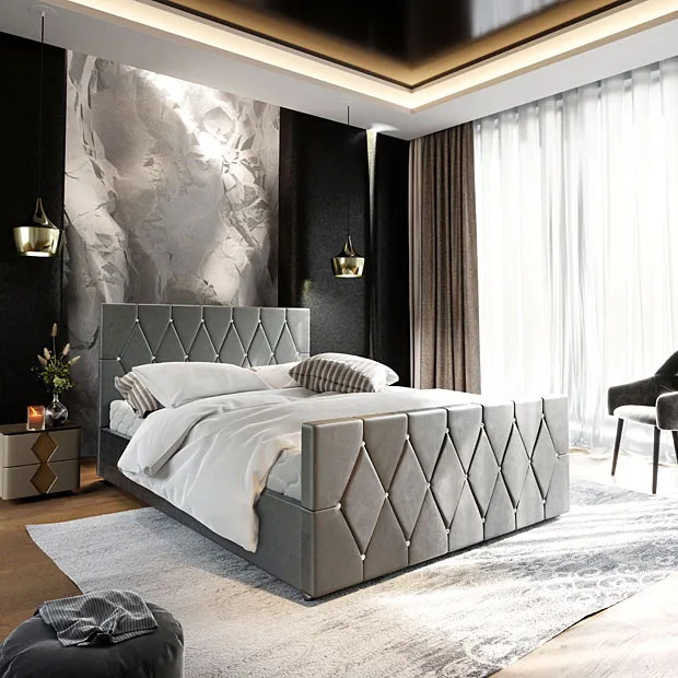 Dotyczy: Czarne łóżko pikowane z pojemnikiem 5 rozmiarów - Diamare