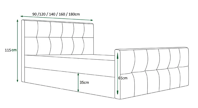 Dotyczy: Zielone tapicerowane łóżko pikowane 5 rozmiarów - Diamare