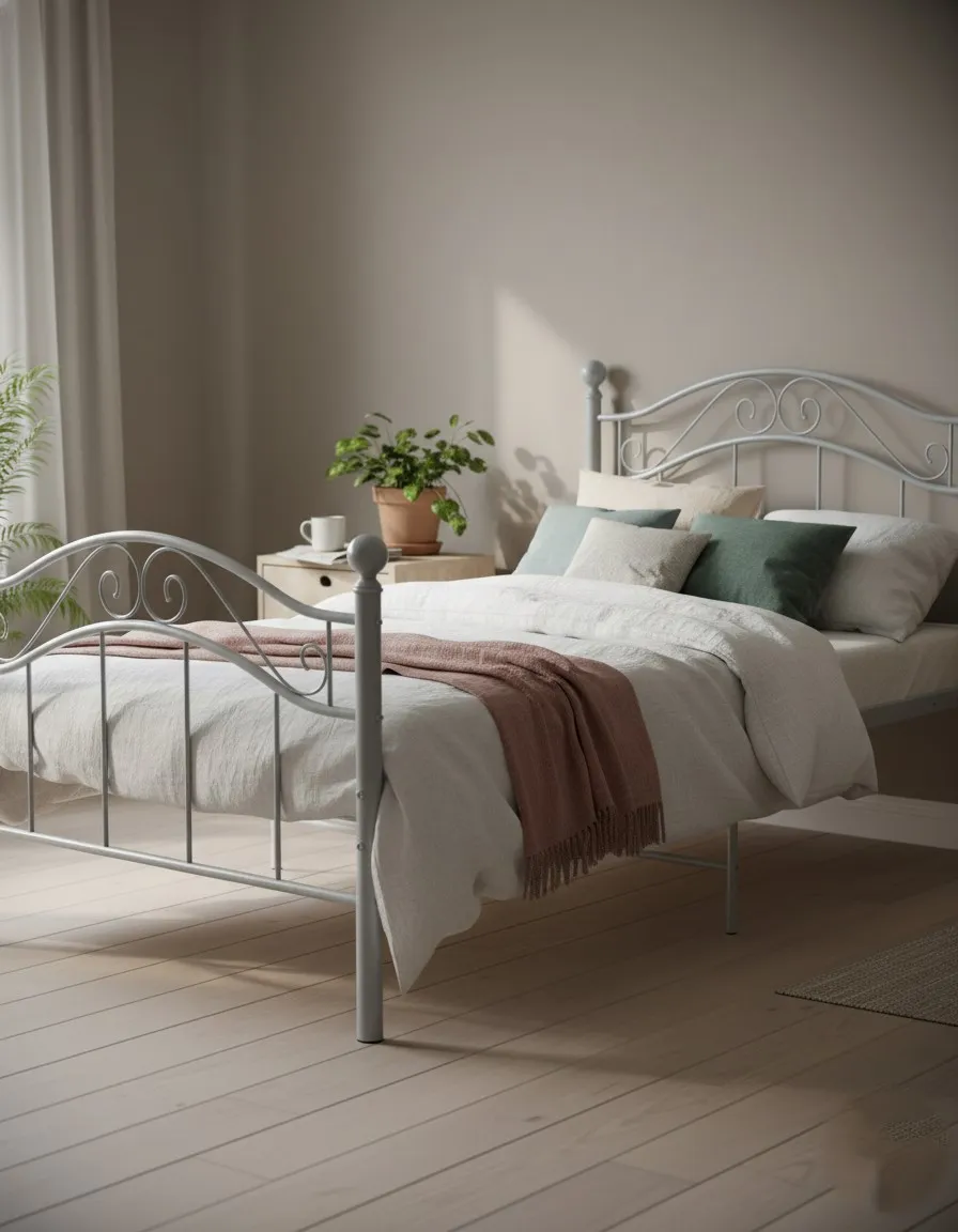 Dotyczy: Białe loftowe łóżko z metalu 100x200 cm - Iroz