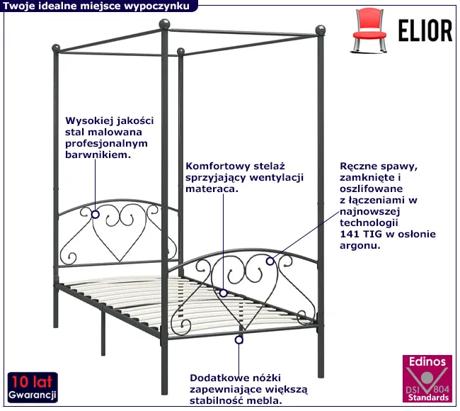 Dotyczy: Czarne metalowe łóżko z baldachimem 100x200 cm - Nila