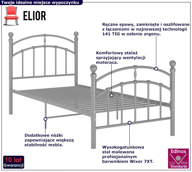 Dotyczy: Czarne metalowe łóżko pojedyncze 100x200 cm - Serafi