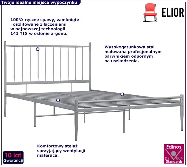 • Kolor: szary. W naszej ofercie posiadamy także inne łóżka metalowe.  Kliknij i stwórz swój wyjątkowy zestaw mebli.