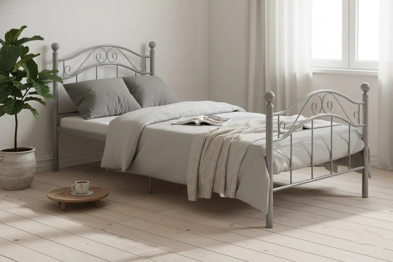 Dotyczy: Łóżko metalowe białe w stylu industrialnym 90x200 cm - Iroz