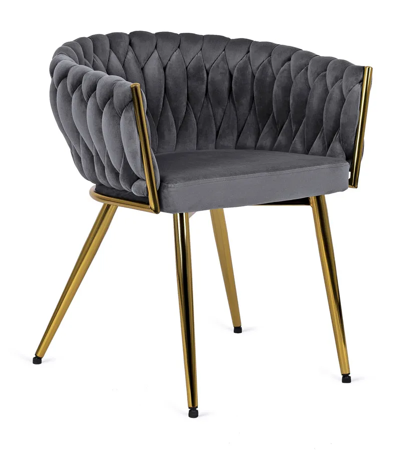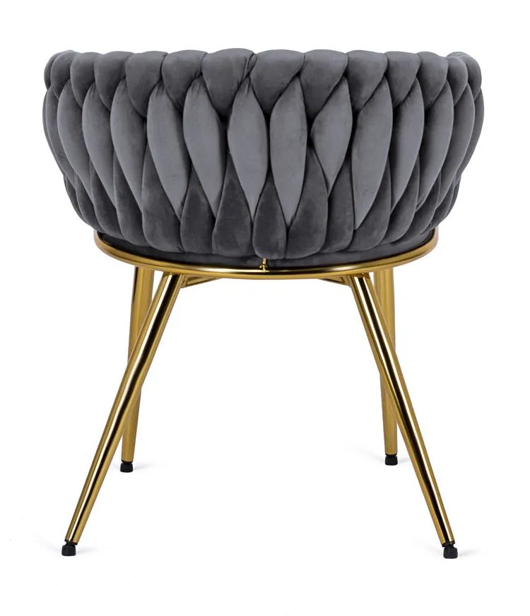 Szare welurowe krzesło plecione z podłokietnikami Celinda