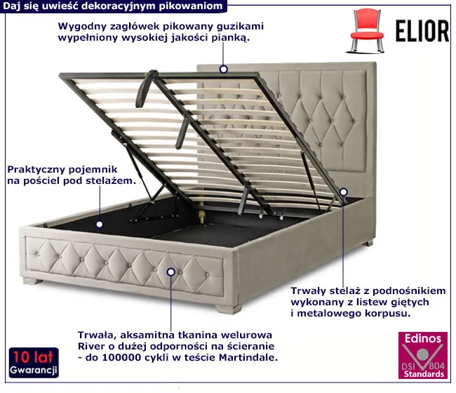 • trwały stelaż jest solidną bazą dla materaca, zapewniając komfortowy sen