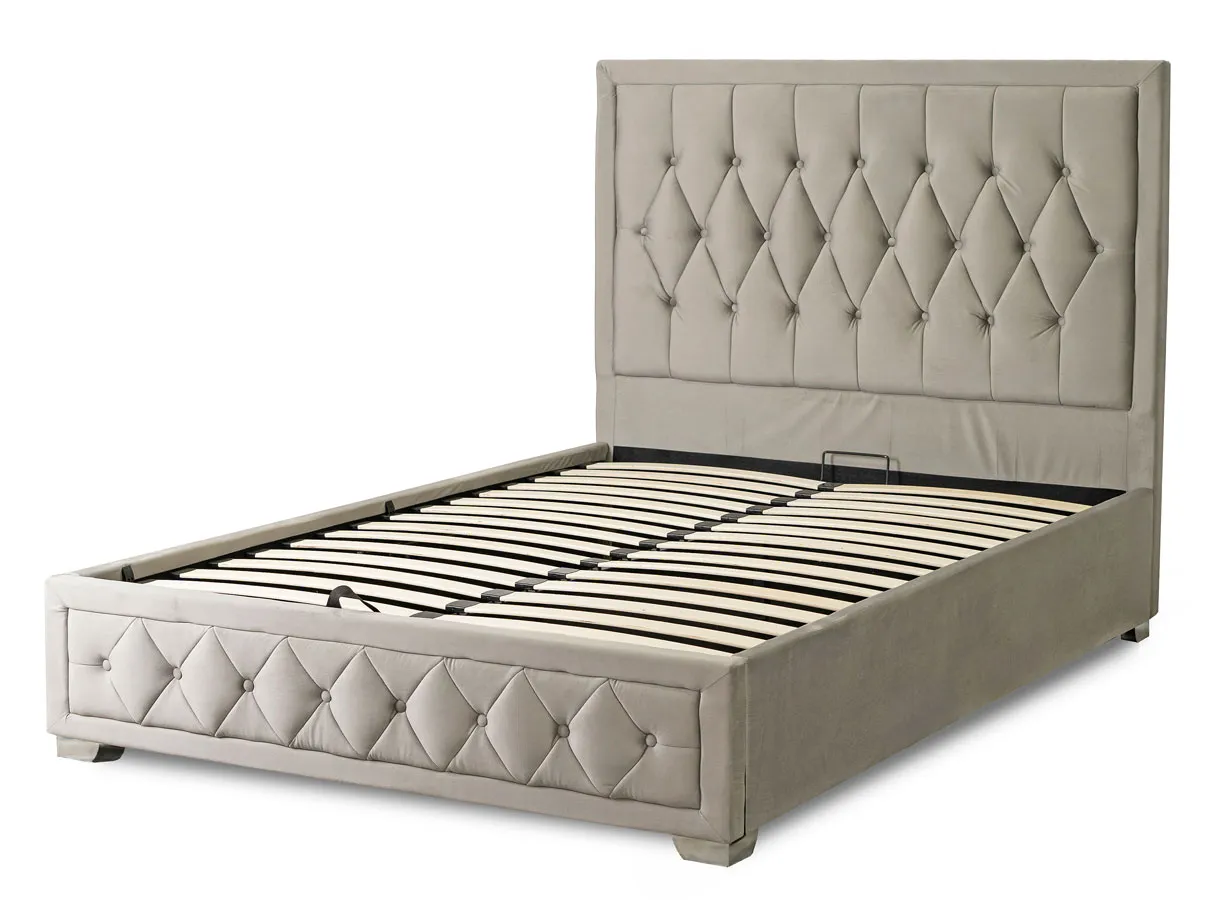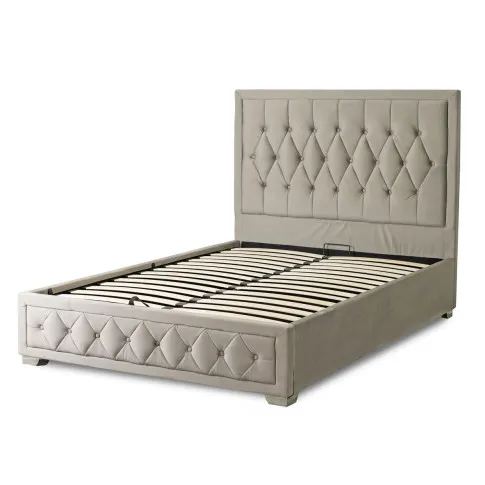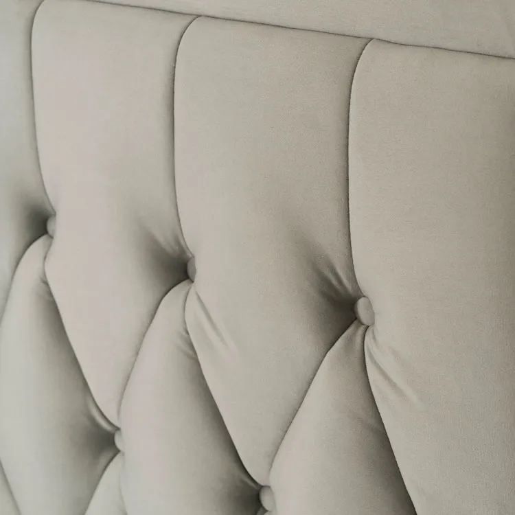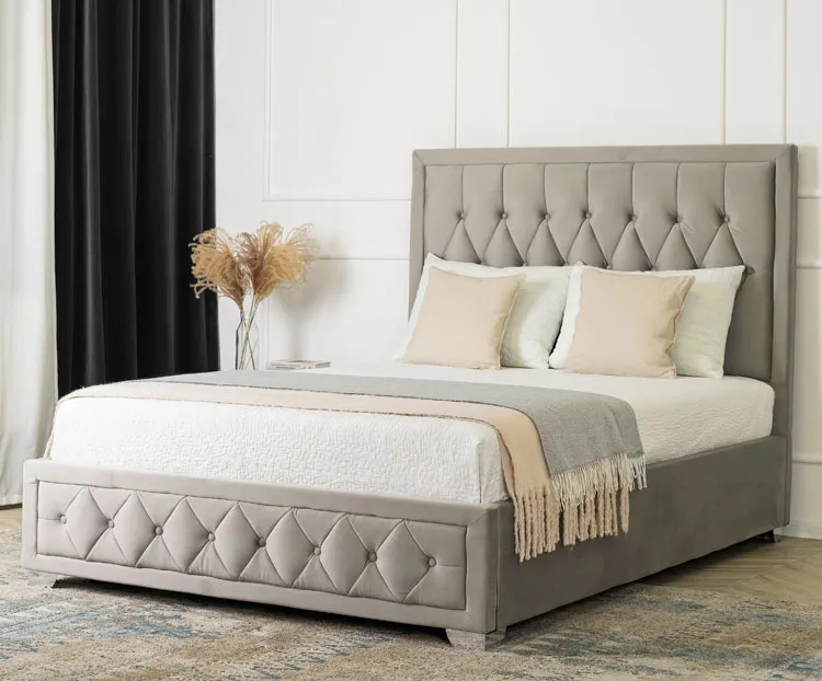 Szare welurowe łóżko pikowane z zagłówkiem 140x200 Renoba