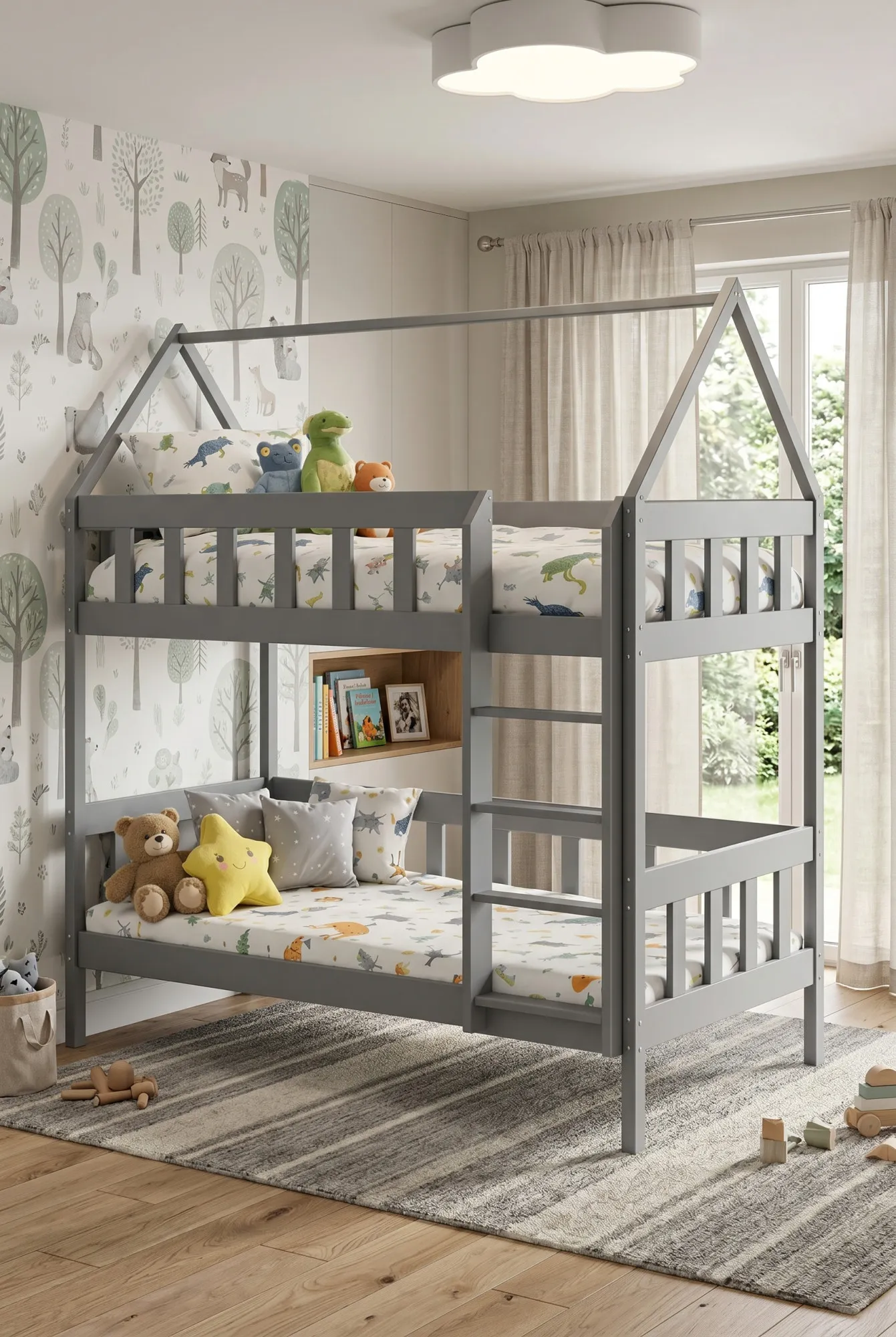 Dotyczy: Drewniane piętrowe łóżko domek dla dzieci, sosna - Varcon 3X 180x90 cm