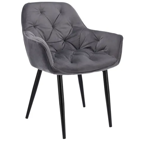 Szare welurowe krzesło z podłokietnikami Odine