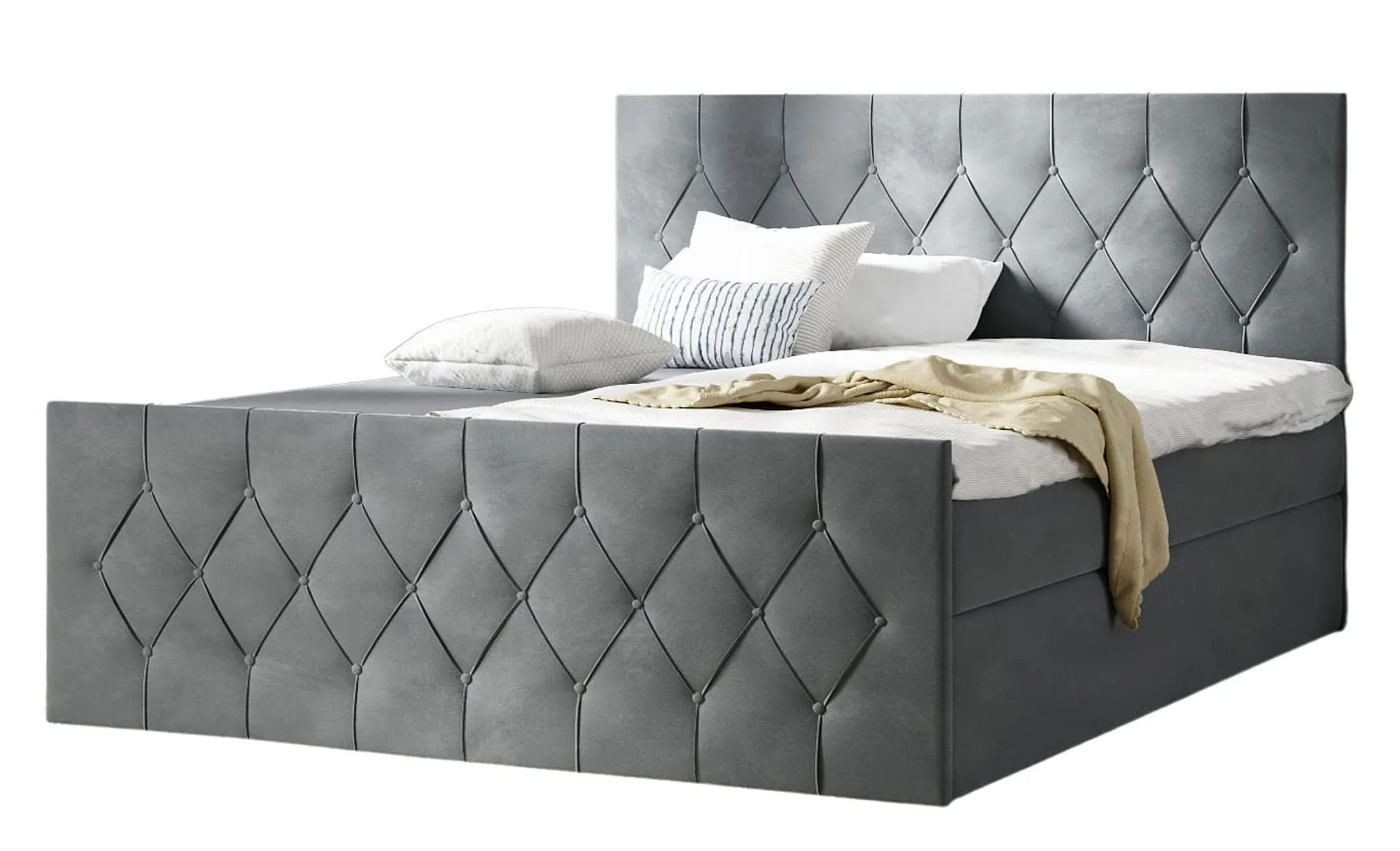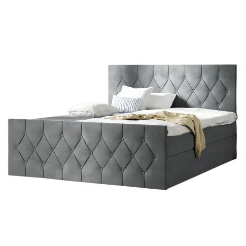 Szare pikowane łóżko welurowe 5 rozmiarów - Omelisse