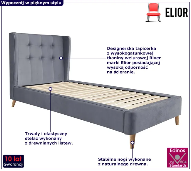 Dotyczy: Różowe welurowe łóżko z pikowanym zagłówkiem 90 cm - Vasto