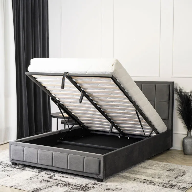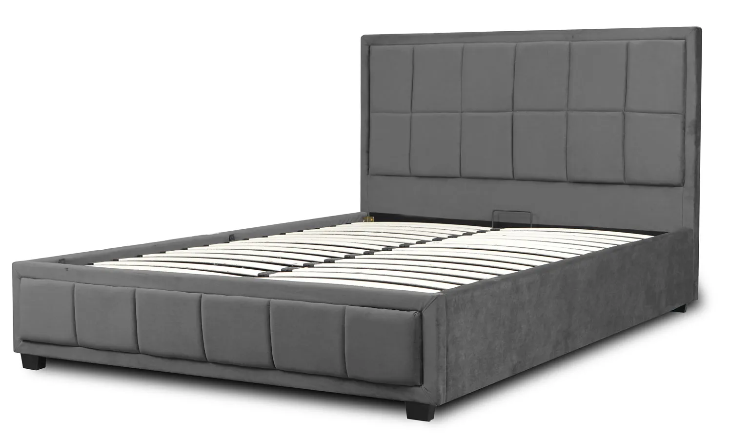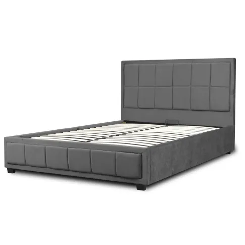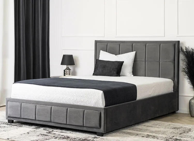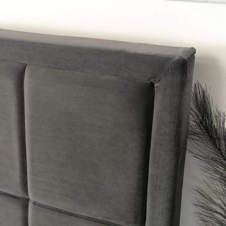 Szare welurowe łóżko pikowane z zagłówkiem 140x200 Ordoni