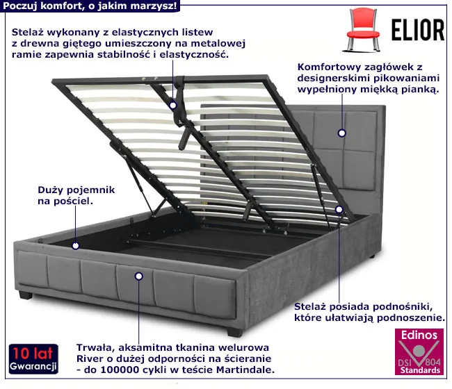• szary kolor łóżka doskonale komponuje się z różnymi aranżacjami wnętrza