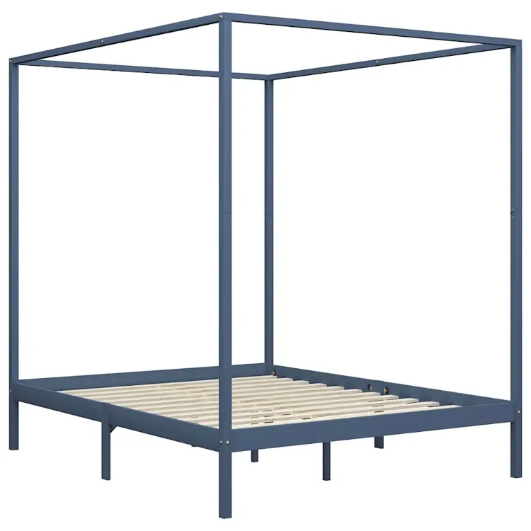 Szare podwójne łóżko z baldachimem 180x200cm - Tamai