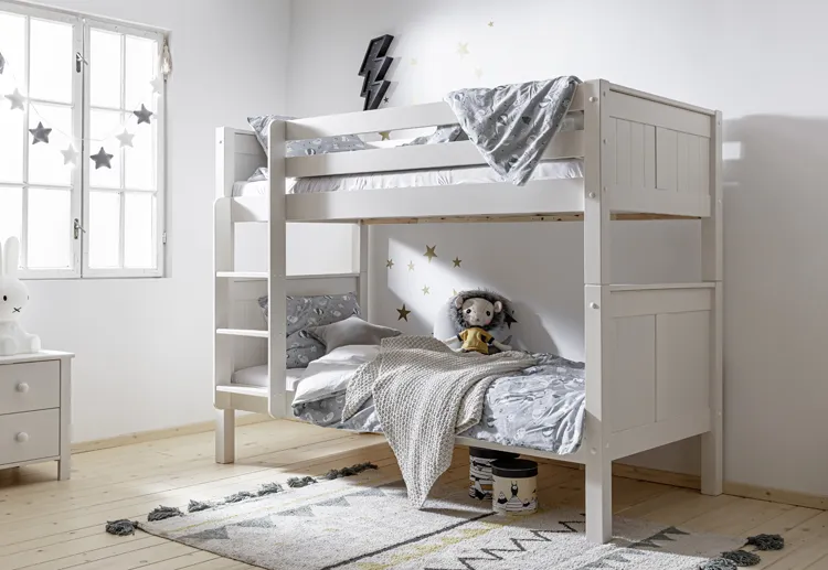 Hej Mamo! Masz dwa słodkie szczęścia w domu? I jeden wspólny pokój dziecinny? W takim razie pewnie bywa tam gwarno i radośnie? A jak sobie radzisz z kłótniami o najlepsze miejsce do spania? To musi być trudne, no chyba, że Twoje pociechy już mają cudownie komfortowe i stylowe łóżko piętrowe. I do tego takie, które można łatwo rozłożyć na dwa osobne łóżka. Nie mają? Wobec tego czas to zmienić! Oto idealne łóżko piętrowe Isadora 4X marki Elior, z którego możesz zrobić dwa autonomiczne królestwa snu dla Twoich skarbów! Kto śpi na górze?