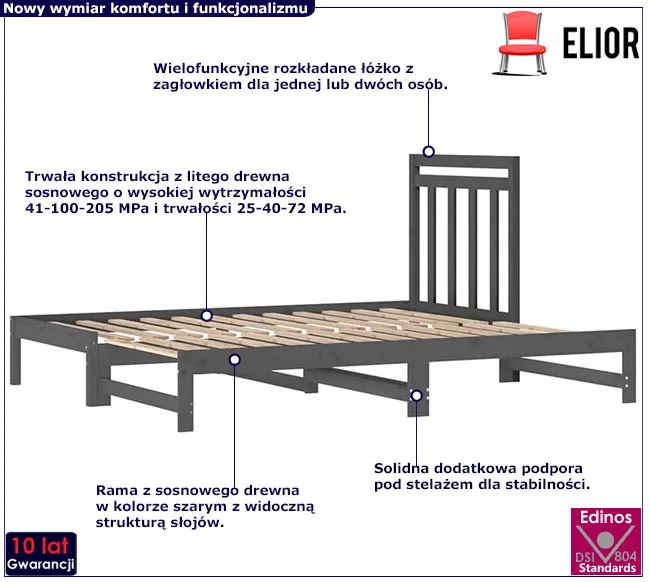 Dotyczy: Czarne łóżko rozsuwane z drewna 2x(90x200) cm - Mivila